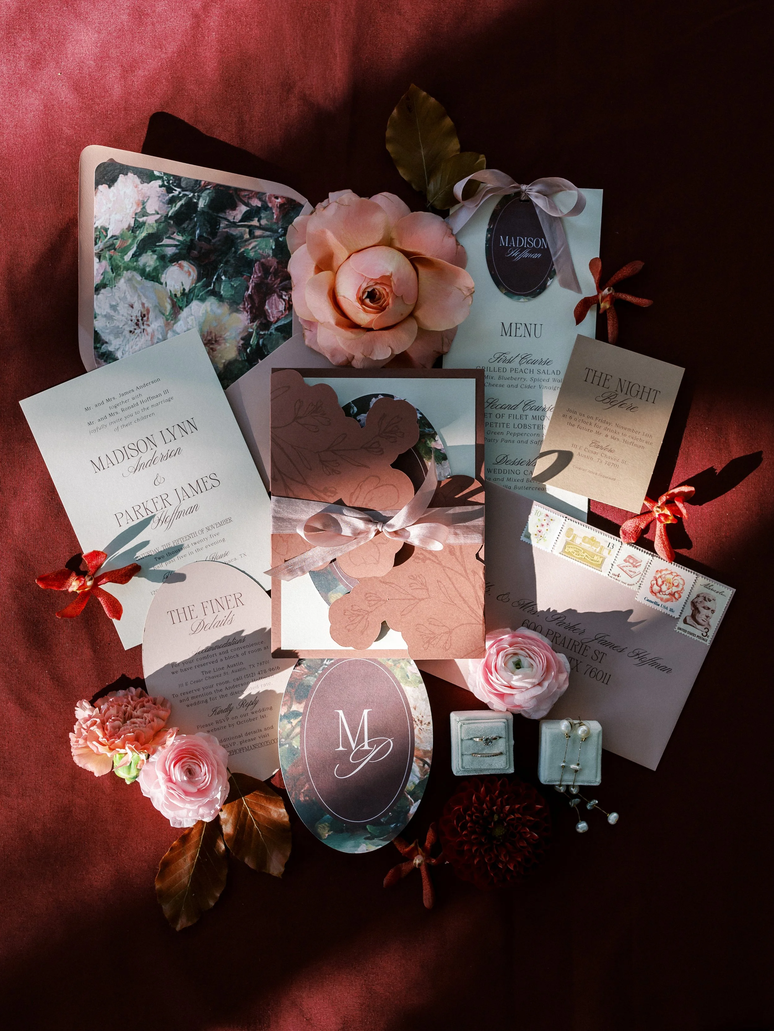 We believe our wedding stationery should be more than just invitations, they should tell the tale of your love story. Finding new and unique ways to tie in the personal details of our couples love story is one of our favorite pieces to the puzzle when it comes to designing a unique invitation suites. We offer a variety of in-house luxury printing methods that allow us to pull out all of the stops for our couples. Ready to design a custom experience for your guests that will leave a lasting impression?